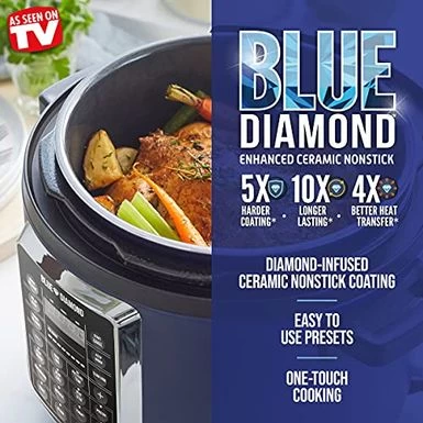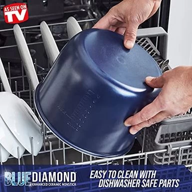 - Metal utensil safe, Blue Diamondโs diamondinfused coating is 5x harder and 10x longer lasting than traditional nonstick