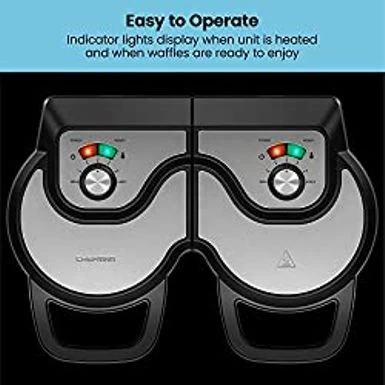 - PERFECT TIMING: Our waffle machine is preset with 7 shade settings so you can customize your waffle with the perfect amount of crunch. Ready indicator lights let you know when cooking is complete for a beautifully browned waffle.