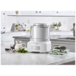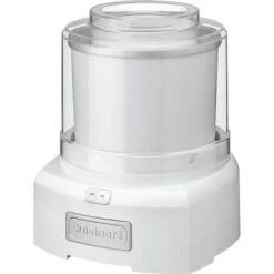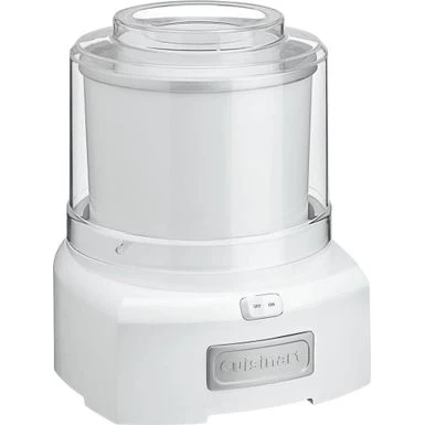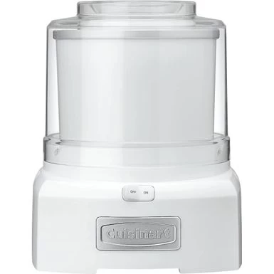 Create delectable frozen treats with this white Cuisinart ice cream and yogurt maker. The double-insulated freezer bowl keeps your dessert temperature down for hassle-free storage, and the transparent lid with a quick-lock mechanism allows easy monitoring and safe use. This Cuisinart ice cream and yogurt maker has a large spout for precise pouring, and the 1.5-qt. capacity ensures everyone gets a treat.