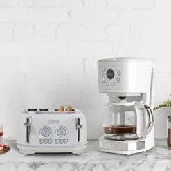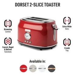 Add a touch of elegance to your morning routine with the Haden Dorset 2-slice wide slot stainless steel toaster. With cancel/defrost/bagel button settings and a retro browning control dial, this toaster is the perfect addition to any kitchen. The self-centering function and removable crumb tray make cleaning a breeze. Available in multiple colors.