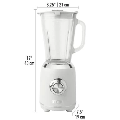 Enjoy fresh smoothies in seconds with Haden Heritage blender. This retro-inspired blender features an ice crush function, five speeds with pulse, anti-slip feet, and a tempered glass jug that is dishwasher safe for added convenience. This gadget is good-looking and perfect for making healthy smoothies, nut milks, sauces, delicious milkshakes, protein shakes, baby food, and more. It perfectly matches our full collection of Heritage small appliances.ย