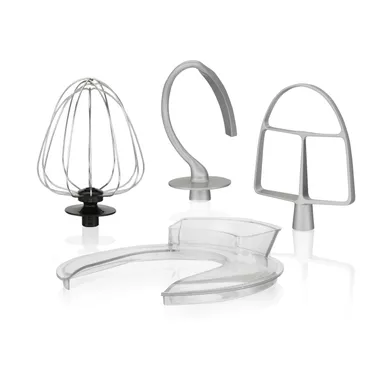 - Included dough hook whisk and flat beater are dishwasher-safe