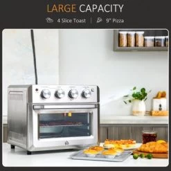 - Smart toaster oven with a large size that allows 4 bread slices or a 9 pizza