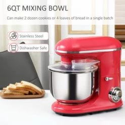 - 6 qt. stainless steel mixing bowl allows you to make two dozen cookies or four loaves of bread in a single batch