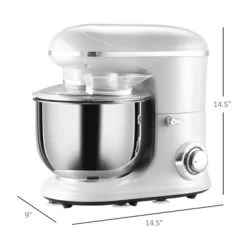 This hand mixer stand features a splash guard that sits overtop the large batter bowl, keeping your clothes and your kitchen clean. Avoid the classic downside to baking, the mess, in a design that prevents the seemingly inevitable scattering of ingredients. This high-power 6-speed kitchen essential will cover your needs with any recipe from slow mixing to kneading to beating to whipping, featuring a flat beater, dough hook, and whisk. The electric time-saver is built with a super-speed pulse mode, a mighty powerhouse of a built-in technology that blends ingredients more effectively and quickly when they’re at any consistency, from thin to thicker. Peacefully quiet operation prevents the irritating noise that bothers others and doesnt let you hear people speak in the room or on the phone. The slim shape saves space in cabinets, accommodating variously sized kitchens, and allows a free countertop for pans, bowls, or an area someone else can use. The splash guard snaps in and out of place for easy set-up, and the stainless steel pieces are all dishwasher safe.