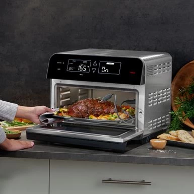 - Air fry, broil, bake, roast, dehydrate, reheat, rotisserie, toast, warm, convection, slow cook, proof, split cook, temperature probe.