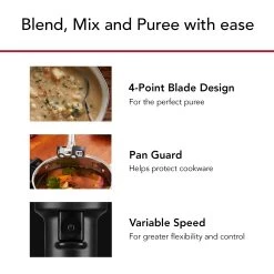 - 4-point stainless steel blade design efficiently blends ingredients for smoothies, milk shakes, soups, hummus and so much more