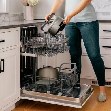 - 8-qt. pot and 5-qt. Cook & Crisp Basket are ceramic coated, nonstick, PTFE/PFOA free, and dishawasher safe.