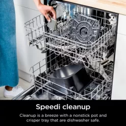 - Nonstick pot and crisper tray are dishwasher-safe, making cleanup quick and easy.