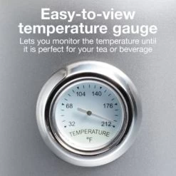 The Proctor Silex 1.7 Liter Electric Dome Kettle has 1500 watts of power for fast boiling and automatic shutoff with boil-dry protection for peace of mind. The Proctor Silex 1.7 Liter Electric Dome Kettle has 1500 watts of power for fast boiling and automatic shutoff with boil-dry protection for peace of mind. The Proctor Silex 1.7 Liter Electric Dome Kettle was designed for simple water heating and boiling. To heat water, simply fill the kettle with water and press the on/off switch down. As the water heats up, you can monitor the easy-to-view temperature gauge until it reaches the perfect temperature for your tea or beverage. If you’re simply boiling water, let the water come to a boil and the kettle will shut off automatically. This kettle features convenient cord-free serving so you can bring the kettle to the table or anywhere hot water is needed. The spout’s mesh filter helps capture hard-water deposits and removes for easy cleaning. The durable stainless steel construction provides long-lasting performance. An easy-to-view water window allows you to effortlessly monitor the water level while the cord wrap makes storage simple. Backed by a 3 year limited warranty.