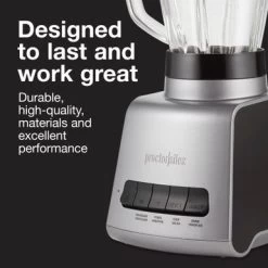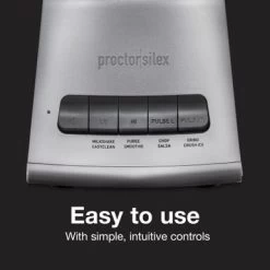 The Proctor Silex Blender is the durable, high-quality, user-friendly blender you’ve been looking for. It has all the great features you want to perfectly blend ingredients, without extras you don’t need. The Proctor Silex Blender is the durable, high-quality, user-friendly blender you’ve been looking for. It has all the great features you want to perfectly blend ingredients, without extras you don’t need. Every feature on this blender has been thoughtfully designed for high performance and convenience. It has simple, intuitive, multi-speed controls and fewer parts to wear out, to efficiently blend food in your kitchen year after year. It’s backed by a lengthy 3 year limited warranty. With 950 watts of peak power, this blender effortlessly blends frozen fruit, ice and tough ingredients. You’ll love how easy it is to create creamy smoothies and whole juices, chop vegetables for salsa, puree soups, and more in this blender. The 52 oz. MultiBlend blending jar is durable and versatile to handle frozen foods and hot liquids. It’s designed to withstand extreme temperature ranges. And the base’s patented design is engineered to minimize motor noise for quieter blending. The glass jar, leak-proof lid and blades are dishwasher safe. The blending jar’s pour spout reduces drips, and the filler cap on the jar lid is removable for easily adding ingredients while blending. This blender’s timeless design, with clean lines and curves, are always in style.