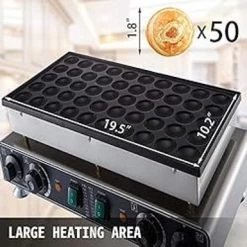 - HIGH EFFICIENCY- The highly conductive cast-iron plate distributes heat evenly to provide golden crispy poffertjes, with a large baking area of 19.5″x10.2″. Baking up to 50 dutch pancakes (1.8″x0.4″) at once will only take you 3-5 minutes.